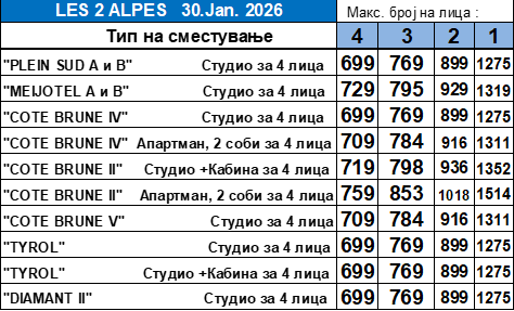 - 7 дневно сместување во одбрани студиа / апартмани според ценовникот, во LES 2 ALPES